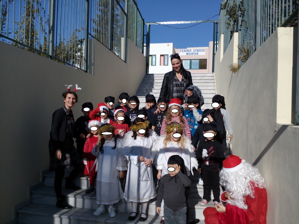 Σήμερα 20 Δεκεμβρίου 2018 οι μαθητές του Ιδιωτικού Νηπιαγωγείου «Παιδική Άνοιξη Babies» επισκέφτηκαν το ΓΕΛ Μοιρών για να πουν τα κάλαντα. Μέσα σε θερμό κλήμα υποδοχής από καθηγητές και μαθητές τα παιδιά τραγούδησαν τα παραδοσιακά κρητικά κάλαντα των Χριστουγέννων και της Πρωτοχρονιάς ντυμένα αγγελάκια, Αγιο-Βασίληδες και Καλικαντζαράκια. Στο τέλος, δεν έλειψαν τα φιλέματα των παιδιών από τους καθηγητές του Λυκείου, τους οποίου και ευχαριστούμε για τη φιλοξενία τους.